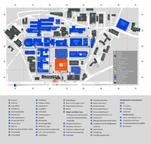 • ca. alle 15 Minuten hält der Bus an 11 Haltestellen innerhalb des Klinikgeländes